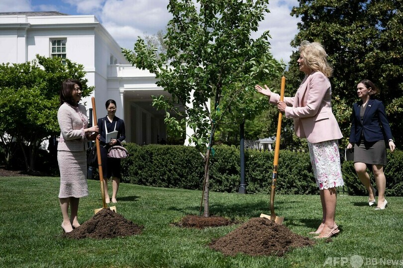 岸田裕子首相夫人がホワイトハウス訪問 桜を植樹