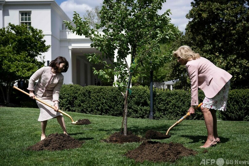 岸田裕子首相夫人がホワイトハウス訪問 桜を植樹