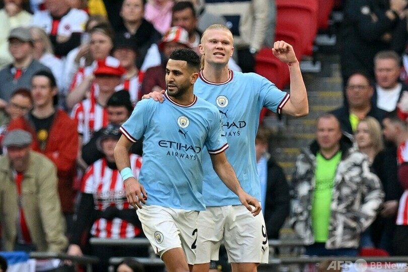 【4月23日 AFP】イングランドFAカップ(FA Cup 2022-23)は22日、準決勝が行われ、マンチェスター・シティ(Manchester City)はリヤド・マフレズ(Riyad Mahrez)が3得点の活躍を見せてチャンピオンシップリーグ(2部)のシェフィールド・ユナイテッド(Sheffield United)を3-0で下し、優勝した2018-19シーズン以来となる決勝進出を決めた。