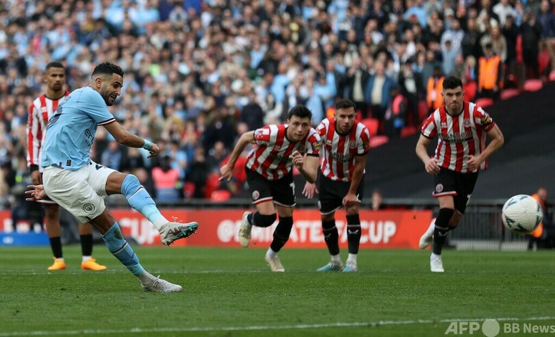 【4月23日 AFP】イングランドFAカップ(FA Cup 2022-23)は22日、準決勝が行われ、マンチェスター・シティ(Manchester City)はリヤド・マフレズ(Riyad Mahrez)が3得点の活躍を見せてチャンピオンシップリーグ(2部)のシェフィールド・ユナイテッド(Sheffield United)を3-0で下し、優勝した2018-19シーズン以来となる決勝進出を決めた。