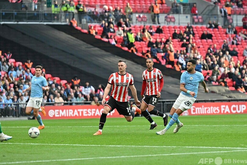 【4月23日 AFP】イングランドFAカップ(FA Cup 2022-23)は22日、準決勝が行われ、マンチェスター・シティ(Manchester City)はリヤド・マフレズ(Riyad Mahrez)が3得点の活躍を見せてチャンピオンシップリーグ(2部)のシェフィールド・ユナイテッド(Sheffield United)を3-0で下し、優勝した2018-19シーズン以来となる決勝進出を決めた。