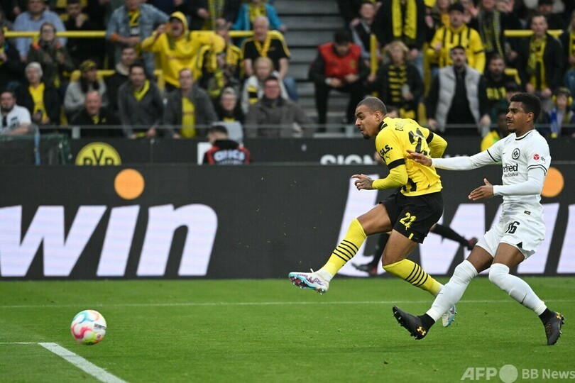 【4月23日 AFP】22-23ドイツ・ブンデスリーガ1部は22日、第29節の試合が行われ、ボルシア・ドルトムント(Borussia Dortmund)は4-0でフランクフルト(Eintracht Frankfurt)に大勝。バイエルン・ミュンヘン(Bayern Munich)が1-3でマインツ05(Mainz 05)に敗れた隙を突き、首位に浮上した。