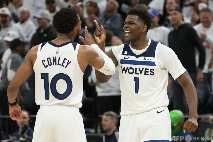 【4月24日 AFP】22-23NBAは23日、各地でプレーオフ1回戦(7回戦制)が行われ、ウエスタンカンファレンス第8シードのミネソタ・ティンバーウルブズ(Minnesota Timberwolves)は、オーバータイムの末に114-108でデンバー・ナゲッツ(Denver Nuggets)を下し、シリーズ戦績を1勝3敗として踏みとどまった。