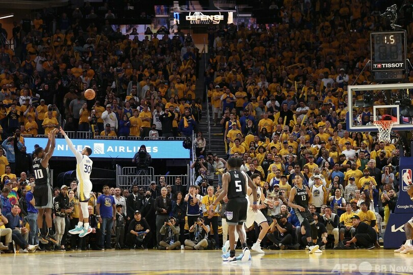 キングスはその後、デアローン・フォックス(De'Aaron Fox)が3ポイントを沈めて1点差に詰め寄ったものの、終了直前のハリソン・バーンズ(Harrison Barnes)のシュートはリムに嫌われ、カリーは安堵(あんど)の吐息をついた。