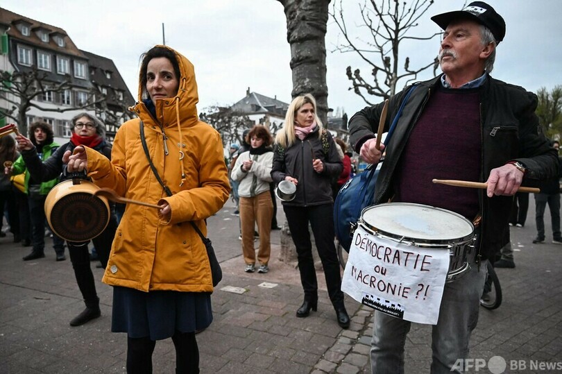 【4月24日 AFP】フランスで、年金支給開始年齢の引き上げを決定したエマニュエル・マクロン(Emmanuel Macron)大統領が最近公の場に姿を現すと、「鍋たたき」デモによる抗議の騒音が上がる。