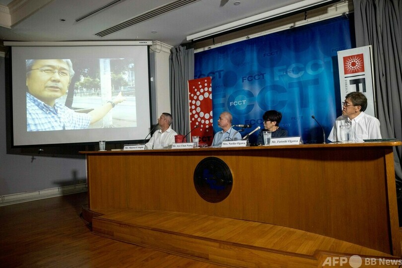 タイの首都バンコクにあるタイ外国特派員協会(FCCT)でこの日、ミャンマーの独立系放送局「ビルマ民主の声(DVB)」が、長井さんの妹、小川典子(Noriko Ogawa)さんにカメラを手渡した。カメラには、長井さんが最後に撮影した映像が残っていた。