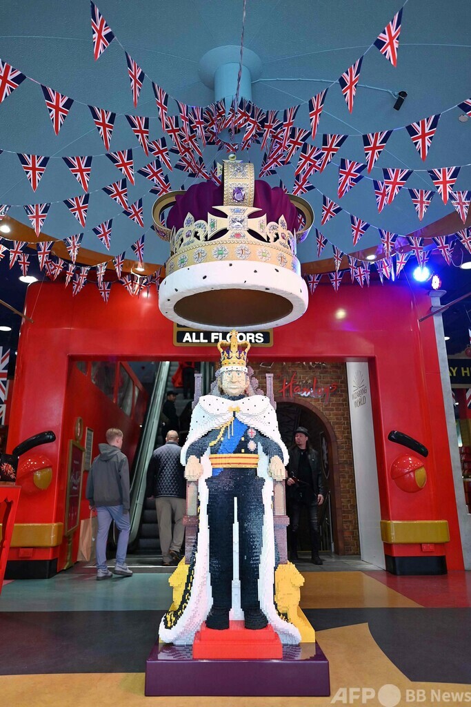 【4月28日 AFP】英ロンドン中心部の玩具店「ハムレーズ(Hamleys)」に27日、おもちゃのレゴ(Lego)ブロックで作られたチャールズ国王(King Charles III)の等身大の像がお目見えした。