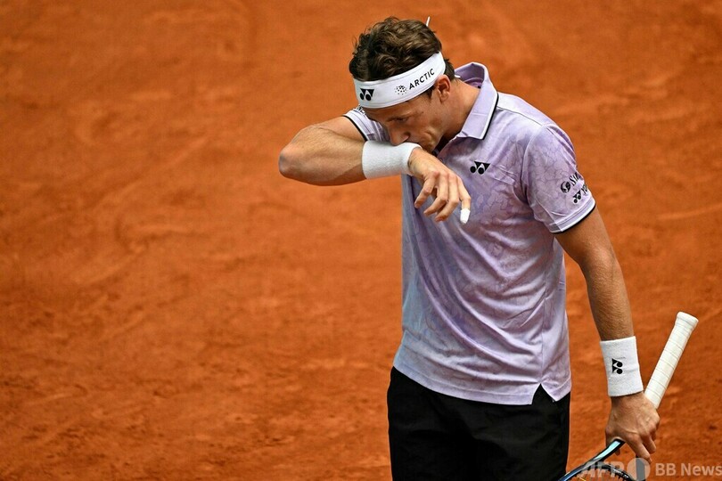 第3シードのキャスパー・ルード(Casper Ruud、ノルウェー)は3-6、4-6で予選勝者のマッテオ・アルナルディ(Matteo Arnaldi、イタリア)に敗れた。(c)AFP