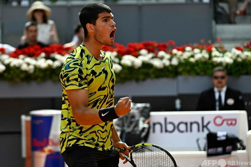 【4月29日 AFP】テニス、マドリード・オープン(Mutua Madrid Open 2023)は28日、男子シングルス2回戦が行われ、連覇を狙う大会第1シードのカルロス・アルカラス(Carlos Alcaraz、スペイン)は2-6、6-4、6-2で世界ランキング41位のエミル・ルースブオリ(Emil Ruusuvuori、フィンランド)に逆転勝ちし、辛くも3回戦進出を果たした。