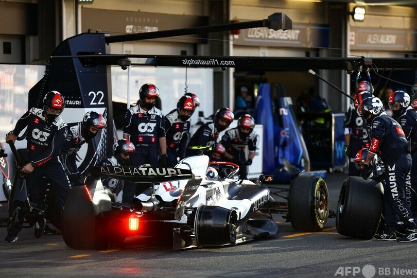 アルファタウリ(AlphaTauri)の角田裕毅(Yuki Tsunoda)は右のリアタイヤが外れるクラッシュを起こし、リタイアに終わった。(c)AFP