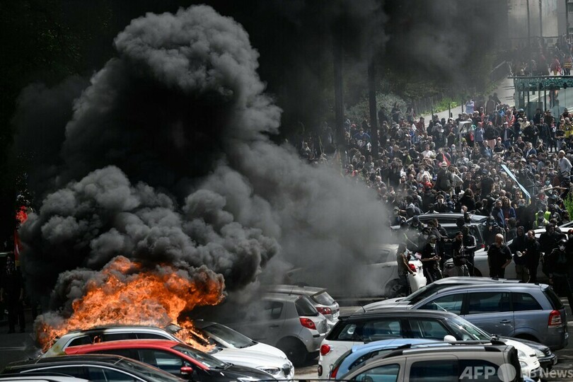 AFP記者によると、パリでは一部参加者が警察に物を投げつけたり、銀行などの店舗の窓ガラスを割ったりした。警察は催涙ガスと放水銃で対応。放たれた火が建物に広がり、消防が出動する事態にもなった。