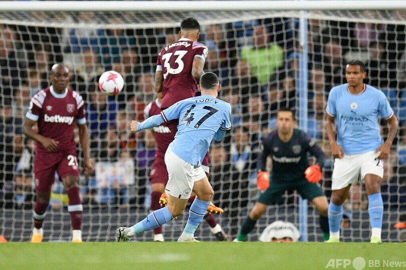 【5月4日 AFP】22-23イングランド・プレミアリーグは3日、第28節の延期分が行われ、マンチェスター・シティ(Manchester City)のアーリング・ブラウト・ハーランド(Erling Braut Haaland)が、ホームのウェストハム(West Ham)戦で今季リーグ戦35ゴール目を決め、プレミアのシーズン最多得点記録を更新した。シティは3-0で勝利し、消化が1試合少ない中で2位アーセナル(Arsenal)と1ポイント差の首位に再浮上した。