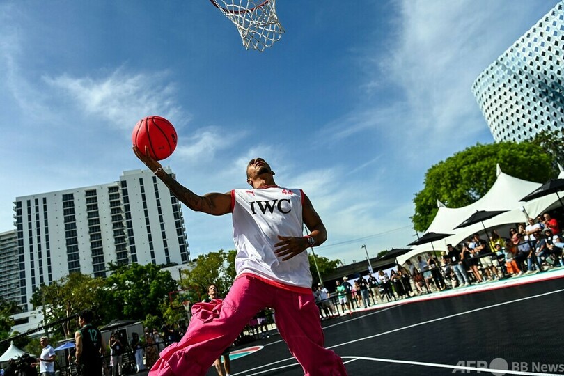 【5月4日 AFP】フォーミュラワン(F1、F1世界選手権)に参戦するメルセデスAMG(Mercedes AMG)のルイス・ハミルトン(Lewis Hamilton)が3日、米フロリダ州マイアミで行われたスイスの高級時計ブランド「IWC」のイベントで、バスケットボールをプレーした。F1は今週、今季第5戦マイアミGP(Miami Grand Prix 2023)が開催される。(c)AFP