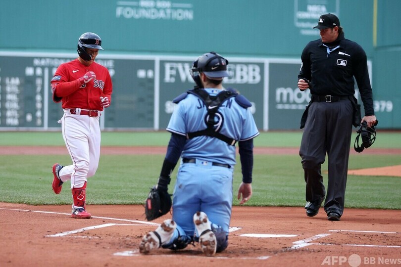 【5月5日 AFPBB News】米大リーグ(MLB)は4日、各地で試合が行われ、ボストン・レッドソックス(Boston Red Sox)の吉田正尚(Masataka Yoshida)はトロント・ブルージェイズ(Toronto Blue Jays)戦に2番・左翼で先発出場し、初回の第1打席に先制の中越え6号ソロ本塁打を放った。これで14試合連続安打とすると、2回の第2打席、4回の第3打席にも適時打を放ち、この日は5打数3安打。レッドソックスは11-5で勝利した。(c)AFPBB News
