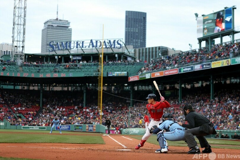 【5月5日 AFPBB News】米大リーグ(MLB)は4日、各地で試合が行われ、ボストン・レッドソックス(Boston Red Sox)の吉田正尚(Masataka Yoshida)はトロント・ブルージェイズ(Toronto Blue Jays)戦に2番・左翼で先発出場し、初回の第1打席に先制の中越え6号ソロ本塁打を放った。これで14試合連続安打とすると、2回の第2打席、4回の第3打席にも適時打を放ち、この日は5打数3安打。レッドソックスは11-5で勝利した。(c)AFPBB News