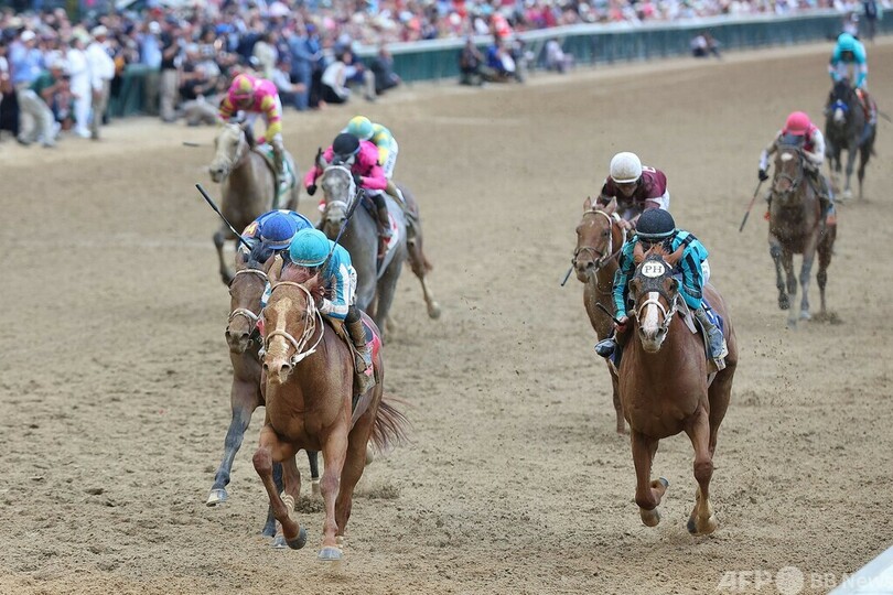 【5月7日 AFP】米国競馬のG1レース、第149回ケンタッキーダービー(149th Kentucky Derby、3歳、ダート約2000メートル)が6日、米ケンタッキー州ルイビル(Louisville)のチャーチルダウンズ競馬場(Churchill Downs)で開催され、ハビエル・カステリャーノ(Javier Castellano)騎手騎乗のメイジ(Mage)が差し切り優勝を飾った。