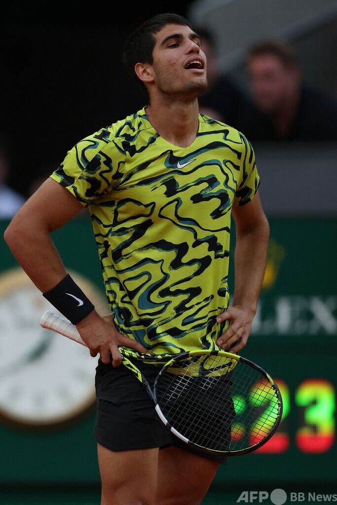 アルカラスは「きょうは楽しめた部分もあったが、苦しんだ部分もあった。それでも、こういったこととも付き合っていかなくてはならない」と話し、「緊張が影響していて難しかったが、きょうは苦しむよりも楽しめたと思う」と続けた。(c)AFP