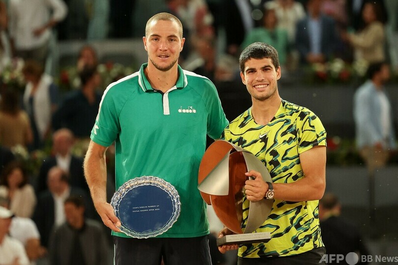 【5月8日 AFP】テニス、マドリード・オープン(Mutua Madrid Open 2023)は7日、男子シングルス決勝が行われ、大会第1シードのカルロス・アルカラス(Carlos Alcaraz、スペイン)は6-4、3-6、6-3でヤン・レナード・シュトルフ(Jan-Lennard Struff、ドイツ)に勝利し、連覇を達成した。