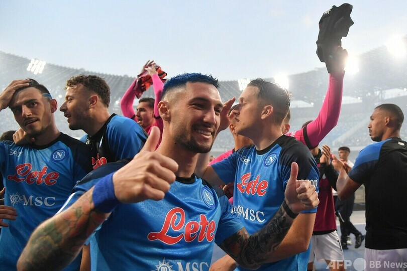 王者ナポリが勝利、ホームのファンと優勝喜ぶ