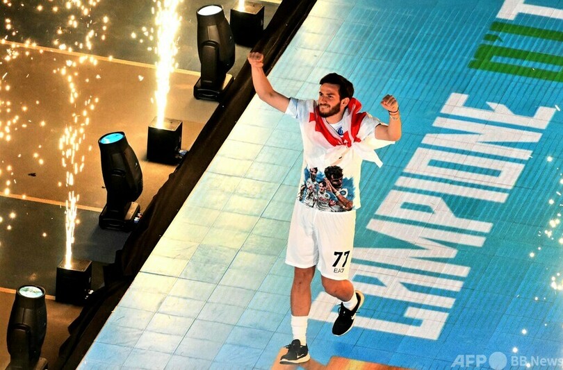 試合開始前には、サポーターが優勝回数を示す「3」の数字が入ったイタリア国旗のコレオグラフィーをつくり、「伝説のチャンピオン(We Are The Champions)」を盛大に歌ってチームをたたえた。また、チームは試合後に場内を1周し、ファンから拍手喝采を浴びた。(c)AFP