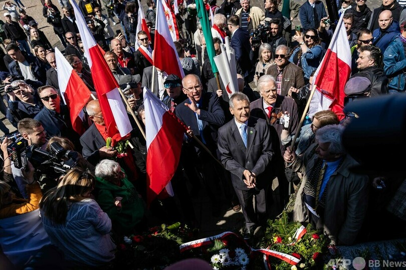 ポーランドの親ウクライナ派団体、ロシア大使の献花阻止 対独戦勝記念日