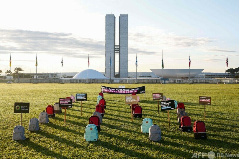 【5月16日 AFP】ブラジル・ブラジリアの国会前で、相次ぐ学校襲撃事件の犠牲者を表したリュックサックが並べられた。国際的な政策提言NGO「アバーズ(Avaaz)」によるもので、ソーシャルメディアを取り締まる法規制の欠如を非難している。(c)AFP
