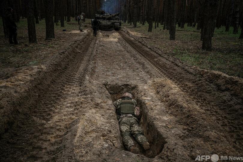 ニュース 戦争・紛争 今日の1枚 ウクライナ危機 【今日の1枚】塹壕に潜む、ウクライナ軍事演習 2023年5月15日 12:15 発信地:ハルキウ/ウクライナ [ ウクライナ ロシア・CIS ] このニュースをシェア ‹ › ❮ 1/3 ❯ ウクライナ・ハルキウ州で行われた軍事演習で、塹壕(ざんごう)に横たわるウクライナ兵(2023年5月1日撮影)。(c)Dimitar DILKOFF / AFP 画像作成中 ! 【5月15日 AFP】ウクライナ・ハルキウ(Kharkiv)州で行われた軍事演習で、塹壕(ざんごう)に横たわるウクライナ兵。(c)AFP 特集:ウクライナ危機 ロシアがウクライナに侵攻、世界は東西冷戦終結後最大の危機に直面している。 戦争・紛争 一覧へ> メディア・報道関係・法人の方向け 写真・動画 購入のお問合せ>