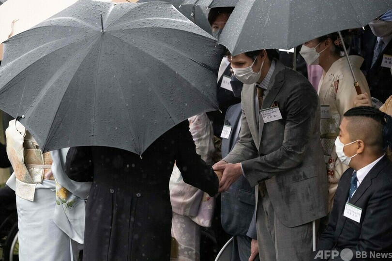 皇族方と共に出席された両陛下は、元車いすテニス選手の国枝慎吾(Shingo Kunieda)さんや、東京パラリンピック競泳で金メダルを獲得した木村敬一(Keichi Kimura)さんら招待客と懇談された。(c)AFP