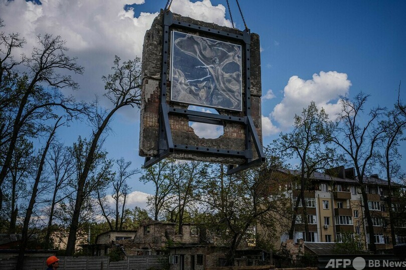 【5月14日 AFP】ウクライナの首都近郊イルピン(Irpin)で13日、英国の覆面ストリートアーティスト、バンクシー(Banksy)のグラフィティ作品が、大きく損壊した建物から壁ごと取り外された。