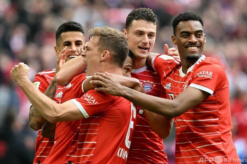 【5月14日 AFP】22-23ドイツ・ブンデスリーガ1部は13日、第32節の試合が行われ、2位ボルシア・ドルトムント(Borussia Dortmund)と首位バイエルン・ミュンヘン(Bayern Munich)はどちらも大勝し、残り2節で両チームの勝ち点1差は変わらなかった。