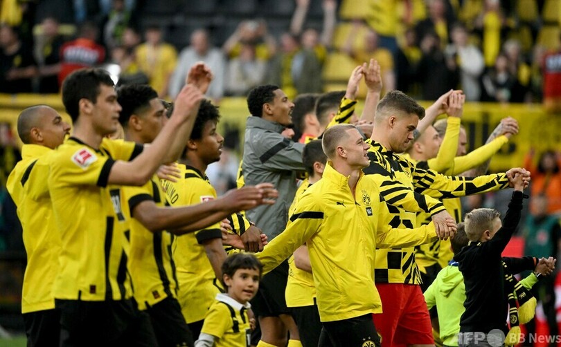 【5月14日 AFP】22-23ドイツ・ブンデスリーガ1部は13日、第32節の試合が行われ、2位ボルシア・ドルトムント(Borussia Dortmund)と首位バイエルン・ミュンヘン(Bayern Munich)はどちらも大勝し、残り2節で両チームの勝ち点1差は変わらなかった。