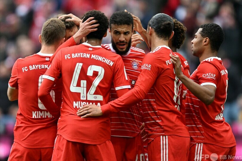 【5月14日 AFP】22-23ドイツ・ブンデスリーガ1部は13日、第32節の試合が行われ、2位ボルシア・ドルトムント(Borussia Dortmund)と首位バイエルン・ミュンヘン(Bayern Munich)はどちらも大勝し、残り2節で両チームの勝ち点1差は変わらなかった。