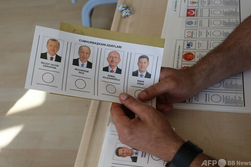 半国営アナトリア(Anadolu)通信によると、開票率が96%を超えた時点で、エルドアン氏が得票率49.4%、野党・共和人民党を率いるクルチダルオール氏が44.9%と拮抗(きっこう)している。