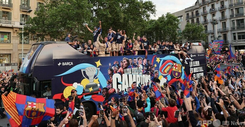 【5月16日 AFP】22-23スペイン1部リーグを制したFCバルセロナ(FC Barcelona)が15日、バルセロナ(Barcelona)市内で優勝パレードを行った。