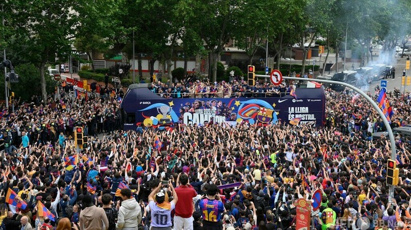 【5月16日 AFP】22-23スペイン1部リーグを制したFCバルセロナ(FC Barcelona)が15日、バルセロナ(Barcelona)市内で優勝パレードを行った。
