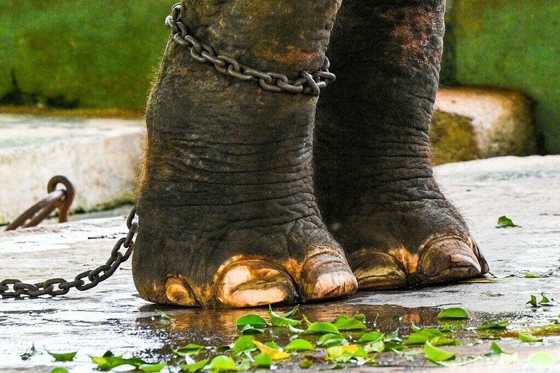 ゾウは、2001年にタイ政府からスリランカに贈られた3頭のうちの1頭、サックスリン。スリランカではムトゥラジャと名付けられた。飼われていた寺院で虐待されていたとみられ、在コロンボ・タイ大使館の介入により保護された。(c)AFP