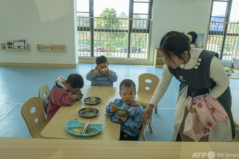 待機児童問題を解消するため、「3歳以下乳幼児のケアサービスの発展促進に関する指導意見」などが公表され、託児サービスの発展を支持する政策や保障措置が次々と打ち出されました。22年末時点で全国には託児サービス機関が約7万5000社あり、約350万の受け入れ可能数を提供しました。託児所が受け入れ可能な3歳以下乳幼児の数は25年には人口1000人当たり4.5人になると見込まれています。中国国家衛生健康委員会などは今年、33都市を第一陣の乳幼児ケアサービスモデル都市に選出し、乳幼児が基本的なケアを受けられるための新しい道を模索しています。(c)CGTN Japanese/AFPBB News