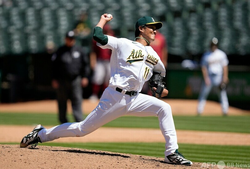 オークランド・アスレチックス(Oakland Athletics)の藤浪晋太郎(Shintaro Fujinami)はアリゾナ・ダイヤモンドバックス(Arizona Diamondbacks)戦に3番手で登板したものの、3分の2回を投げて2失点を喫し、敗戦投手になった。アスレティックスは3-5で敗れている。(c)AFPBB News