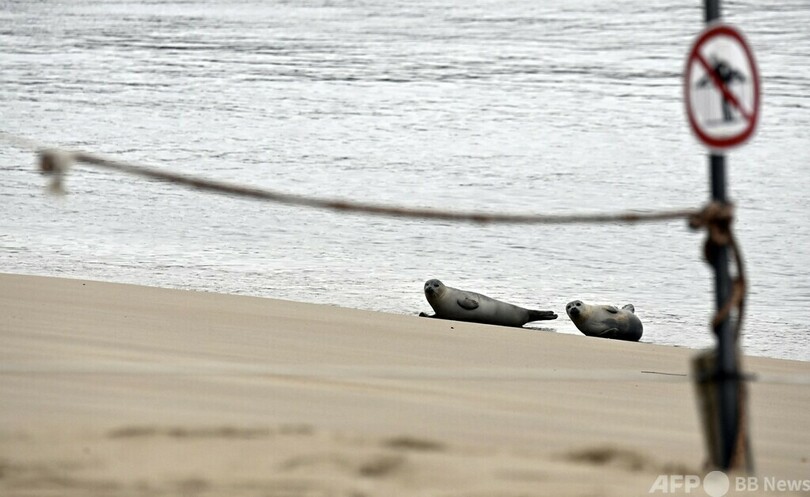 【今日の1枚】波打ち際にヒョッコリ、人に守られ安心 ベルギー