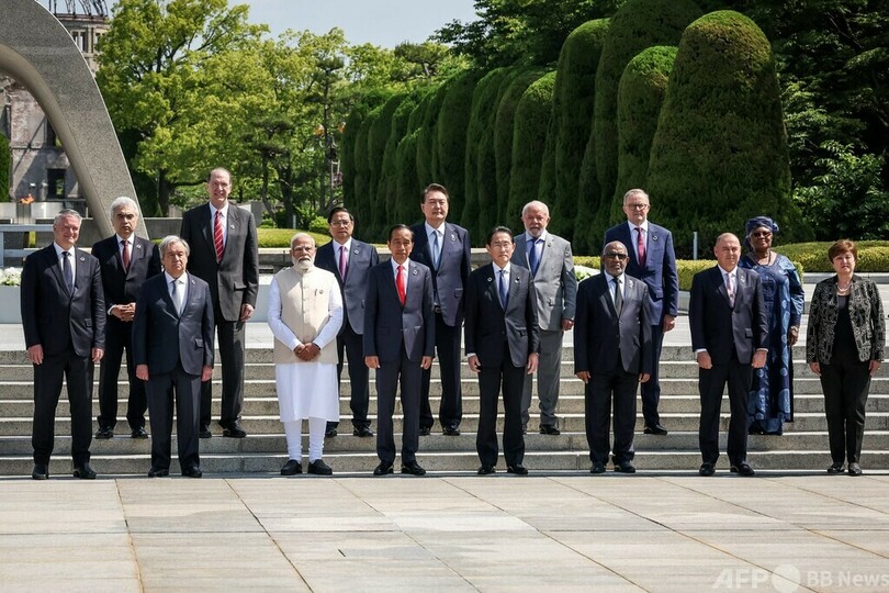 【5月21日 AFP】先進7か国(G7)首脳会議(サミット)の招待国、招待国際機関の首脳らが21日、広島市の平和記念公園を訪れ、広島平和記念資料館(Hiroshima Peace Memorial Museum、原爆資料館)を見学後、原爆慰霊碑に献花した。