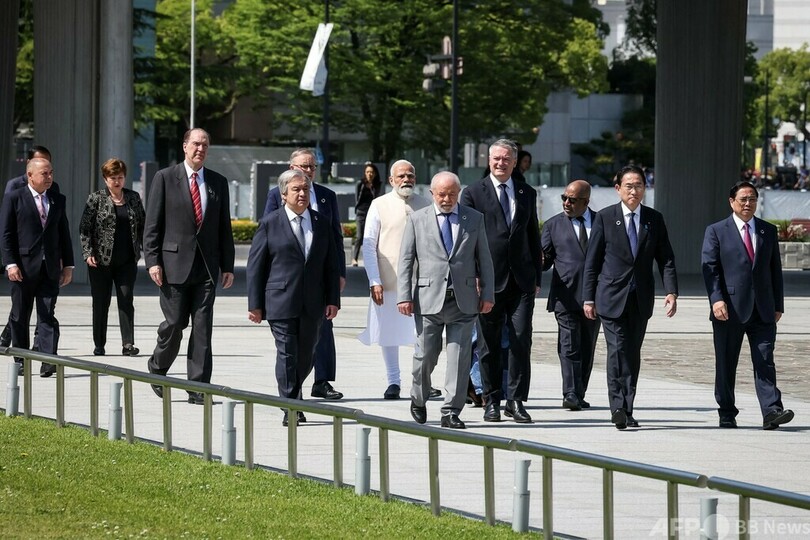 【5月21日 AFP】先進7か国(G7)首脳会議(サミット)の招待国、招待国際機関の首脳らが21日、広島市の平和記念公園を訪れ、広島平和記念資料館(Hiroshima Peace Memorial Museum、原爆資料館)を見学後、原爆慰霊碑に献花した。