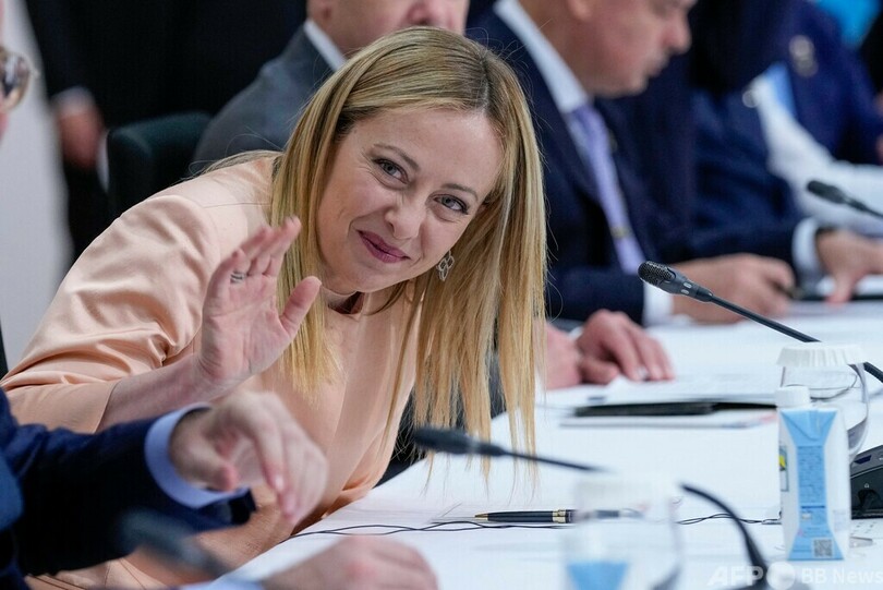 メローニ氏は23日、緊急支援金の拠出に向け閣議決定を目指すとみられている。(c)AFP