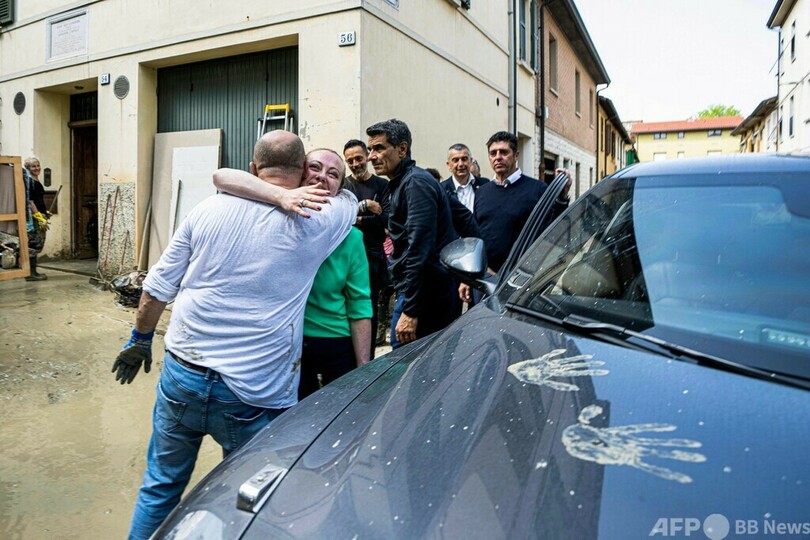 メローニ氏は、被災者やボランティアと握手したり、言葉を交わしたりした。国営イタリア放送協会(RAI)の映像には、住まいを失った人々に食料を提供している住民に「素晴らしい行いだ」と声を掛ける様子も捉えられている。