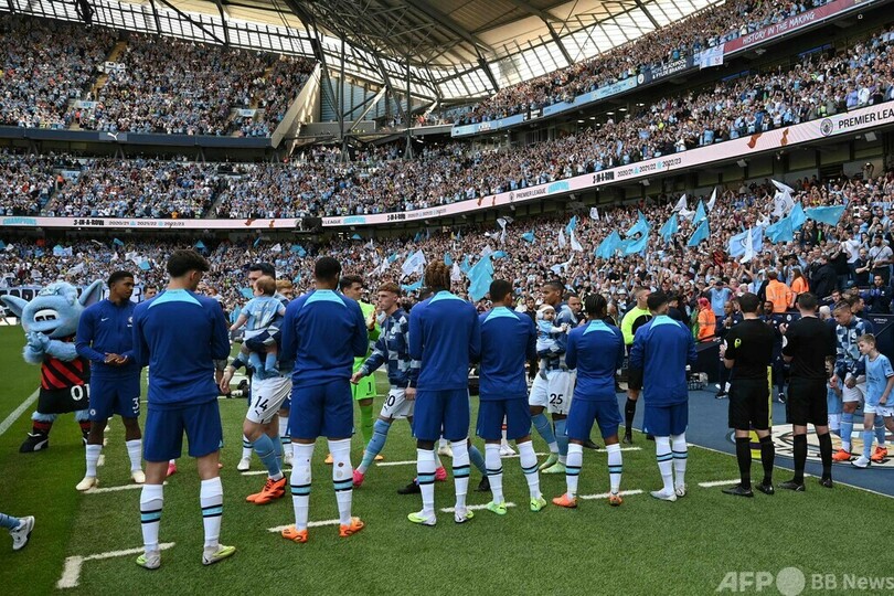 シティの選手たちは、チェルシーの選手がつくった花道を子どもを連れて通り、ピッチに登場した。本拠地エティハド・スタジアム(Etihad Stadium)にはクラブのアンセムが鳴り響き、試合終了の笛が吹かれると大勢のサポーターがピッチになだれ込んだ。