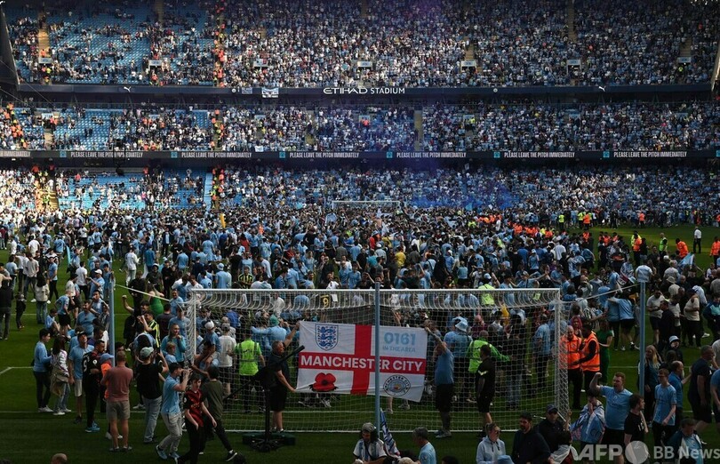 王者マンCが優勝セレモニー ピッチ侵入する歓喜のファンも