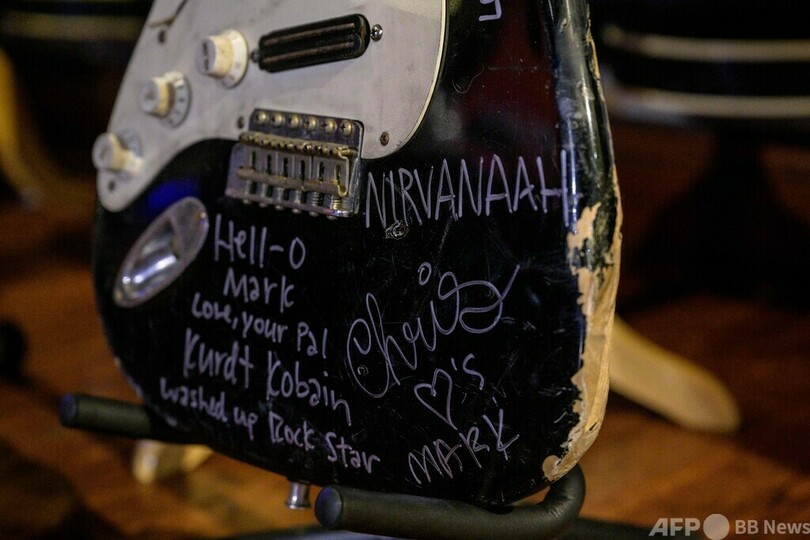 【5月22日 AFP】米ロックバンド「ニルヴァーナ(Nirvana)」のフロントマンだったカート・コバーン(Kurt Cobain)がステージで破壊したギターがニューヨークで競売に掛けられ、当初の予想価格の10倍近い59万5000ドル(約8200万円)で落札された。競売会社ジュリアンズ・オークションズ(Julien's Auctions)が20日、明らかにした。