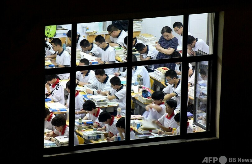 【6月2日 AFP】中国の普通高等学校招生全国統一考試(National College Entrance Examination、NCEE)、いわゆる「高考(Gaokao)」を控え、答案用紙に向かう高校生ら。河北(Hebei)省北部の邯鄲(Handan)で。(c)AFP