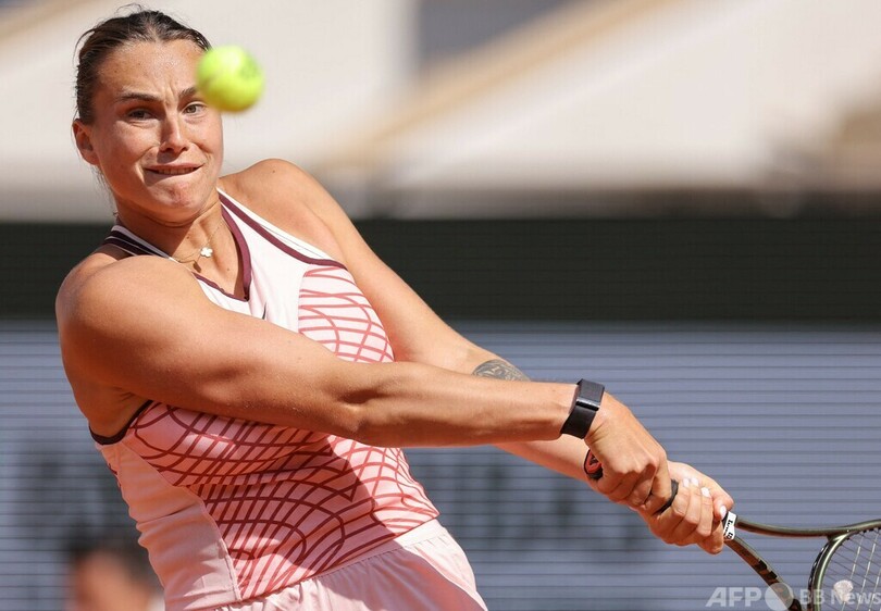 試合は世界ランキング2位で、全豪オープン(Australian Open Tennis Tournament 2023)女王のサバレンカが6-3、6-2で快勝し、自身初の全仏2週目の進出へ向けて好調な滑り出しを切った。 (c)AFP/Dave JAMES