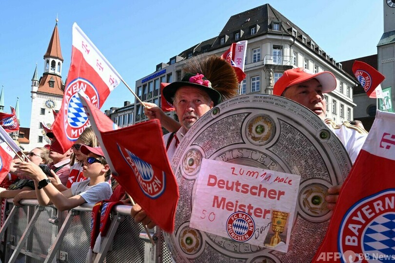 【5月29日 AFP】サッカードイツ・ブンデスリーガ1部のバイエルン・ミュンヘン(Bayern Munich)は28日、ミュンヘン(Munich)市内のマリエン広場(Marienplatz)で、男子と女子のチームがそろって祝勝会を行った。