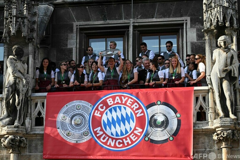 【5月29日 AFP】サッカードイツ・ブンデスリーガ1部のバイエルン・ミュンヘン(Bayern Munich)は28日、ミュンヘン(Munich)市内のマリエン広場(Marienplatz)で、男子と女子のチームがそろって祝勝会を行った。
